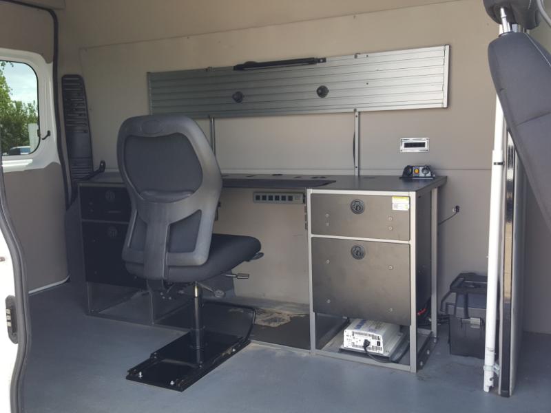 2021 RAM Promaster 1500 MOBILE OFFICE with REAR AC & HEAT and Ladder Rack and Camera System, can easily be converted to RV or CARGO VAN. Auto, V6 gas, 101k miles, Camera System, Alarm/Keyless, Power Windows and Locks. Fleet Vehicle.